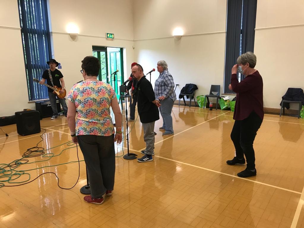 The outdoor visit today included an encounter with the ducks; then on to Thorpe Hesley Community Centre for The Banned to practice. Up at Harding Ave hub it was country & western dancing and crafts while down at the Parkgate hub it was games and music.