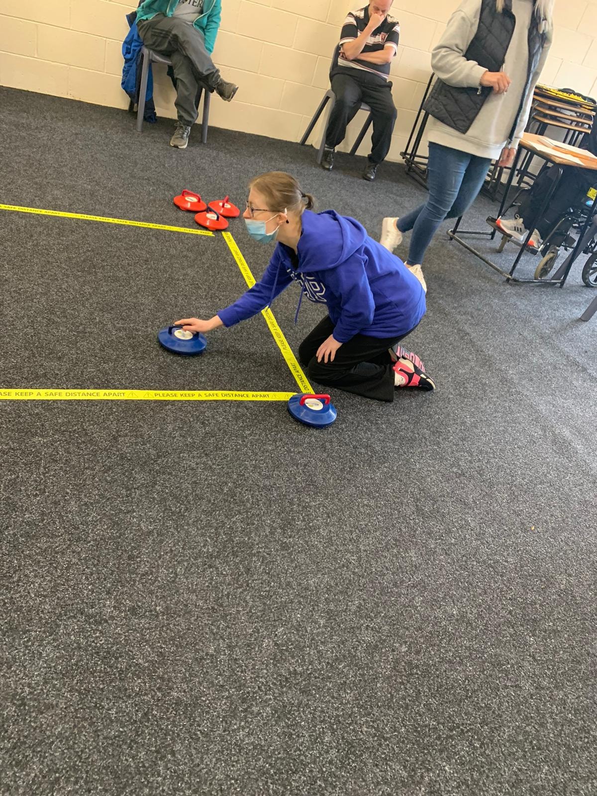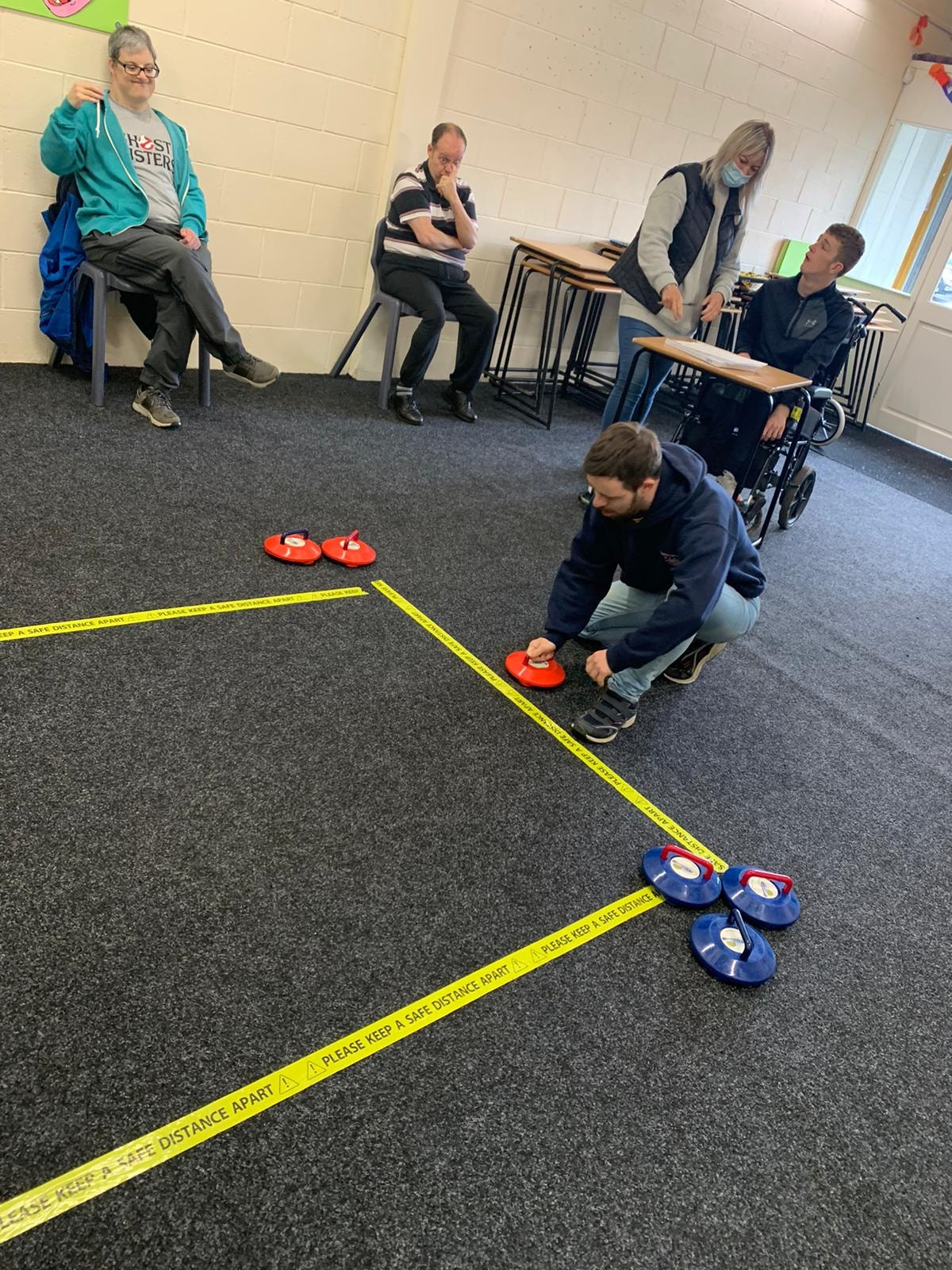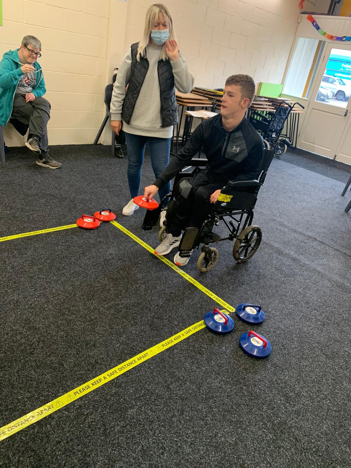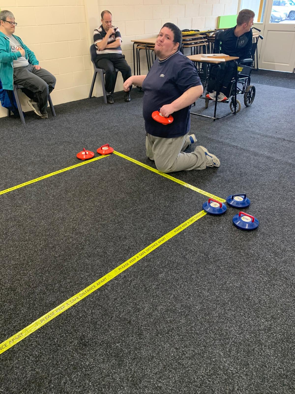 Varied activities again to start the new week. Up at the Harding hub it was art and exercise. The outdoor group were out and about enjoying the leisure facilities, while down at the Parkgate hub it was carpet curling and exercise.
