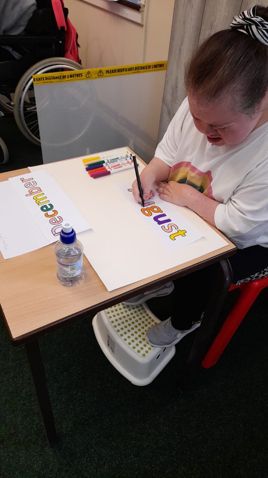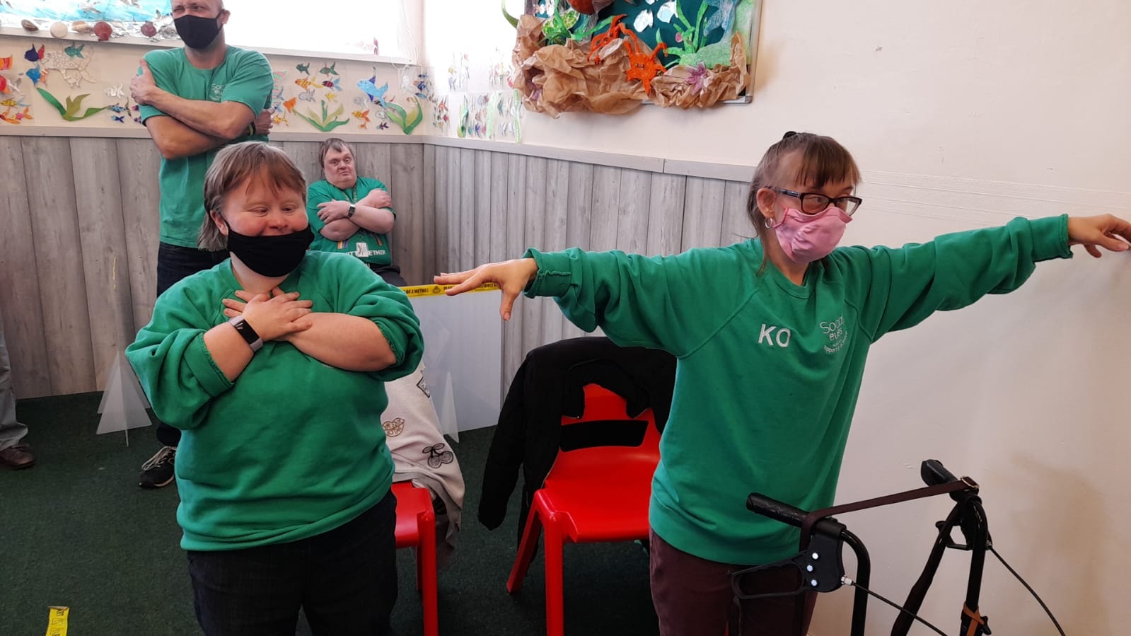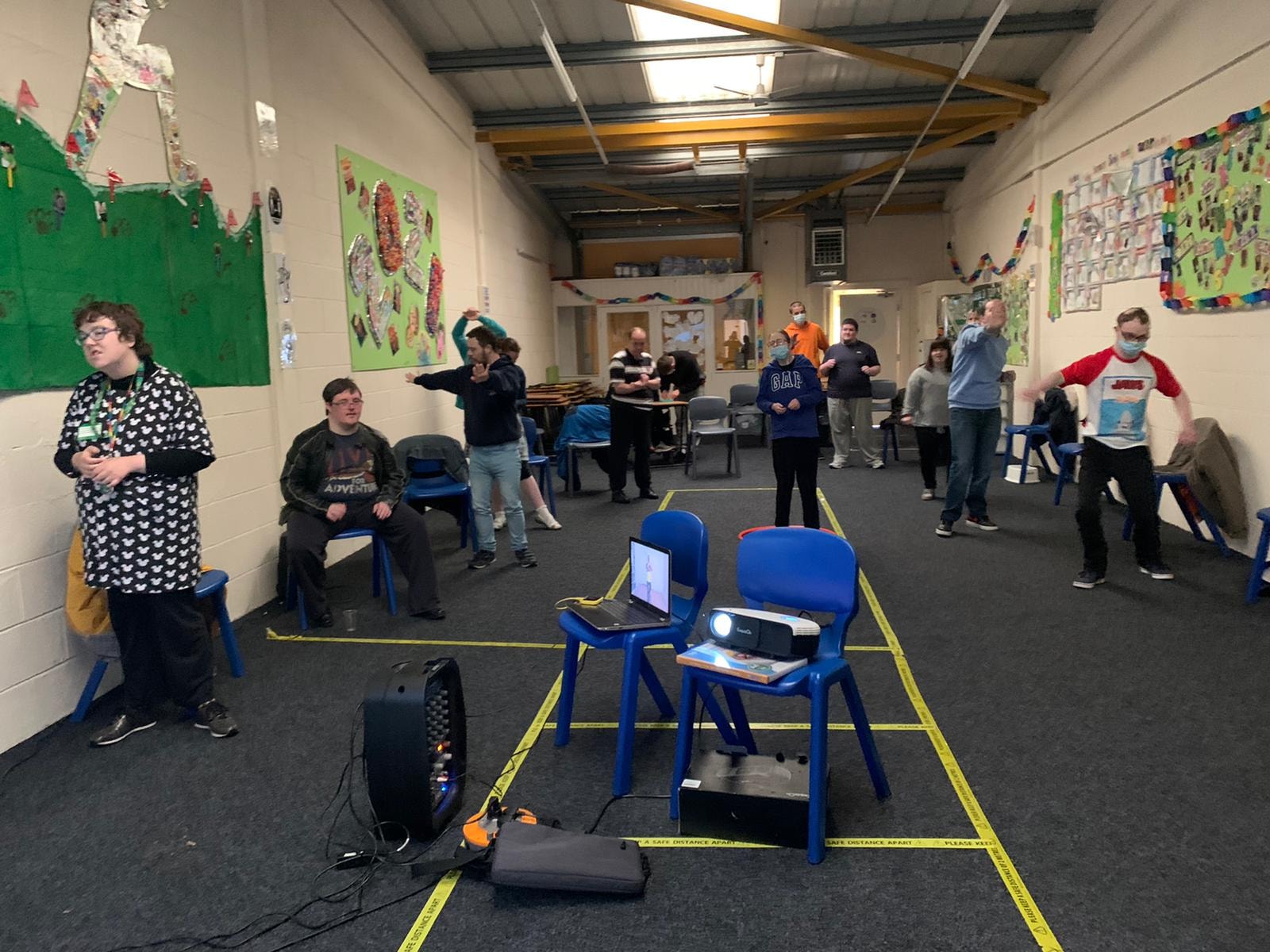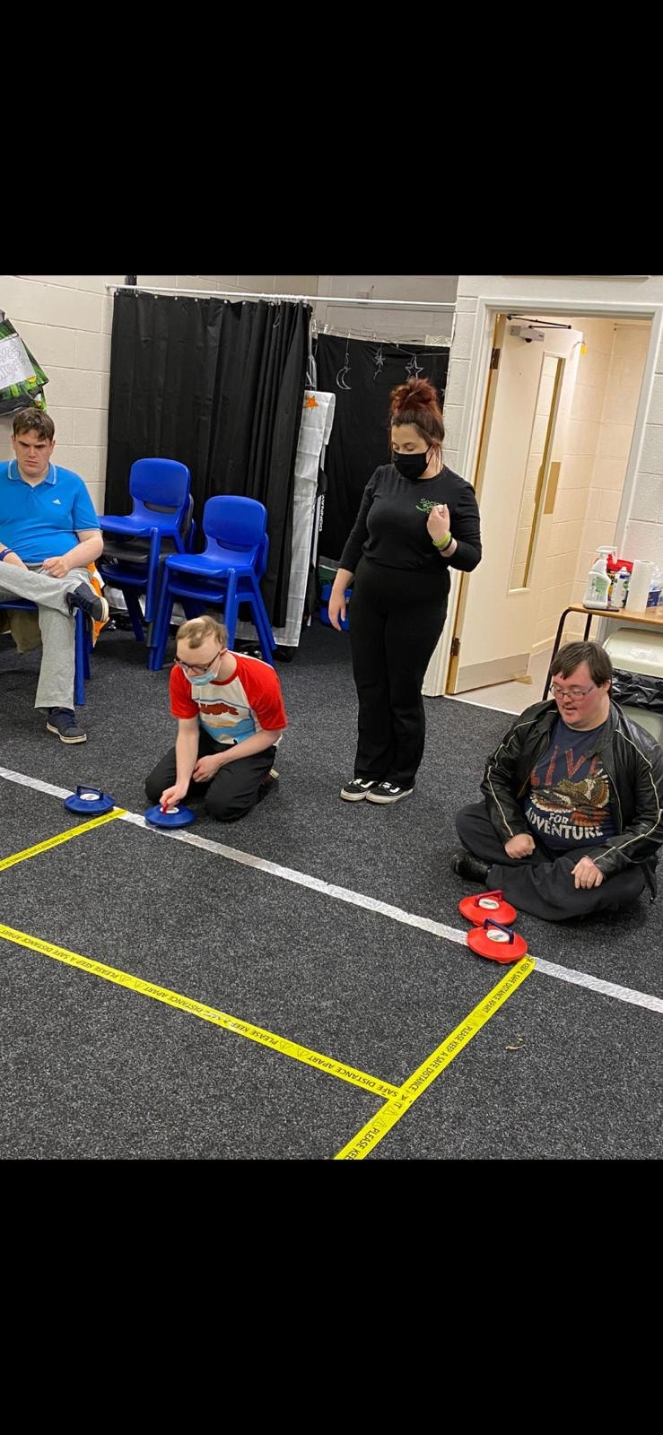 Varied activities again to start the new week. Up at the Harding hub it was art and exercise. The outdoor group were out and about enjoying the leisure facilities, while down at the Parkgate hub it was carpet curling and exercise.