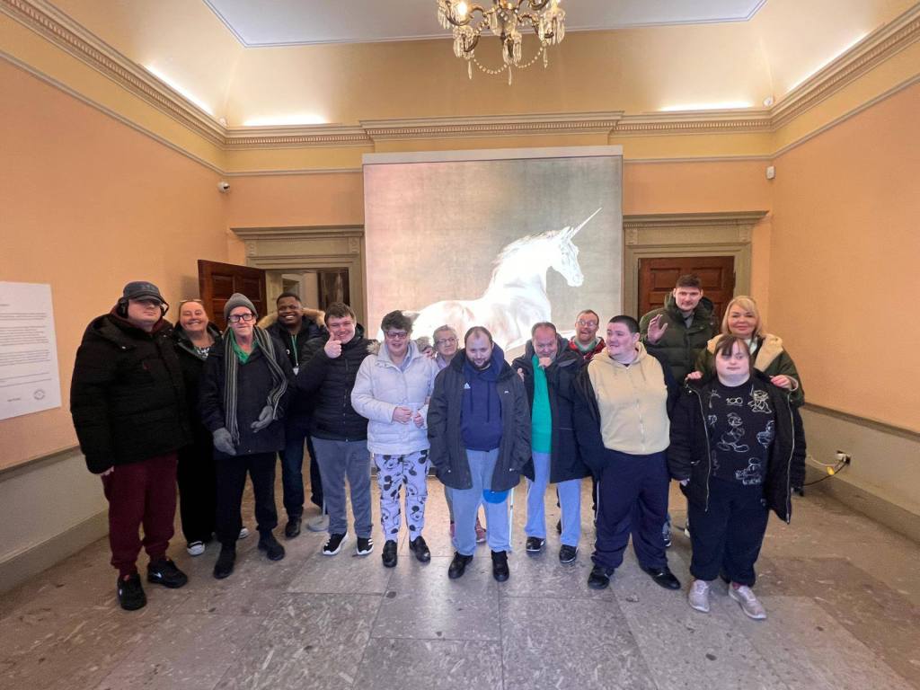 The art explorer group were out and about taking in the art and enjoying a welcome cup of coffee after a long morning of gallery hopping. Each sip of their warm, aromatic coffee served as a short respite, allowing them to recharge before embarking on the next leg of their artistic adventure. The lively chatter and laughter created a vibrant atmosphere as they savored both the coffee and the creativity surrounding them.
